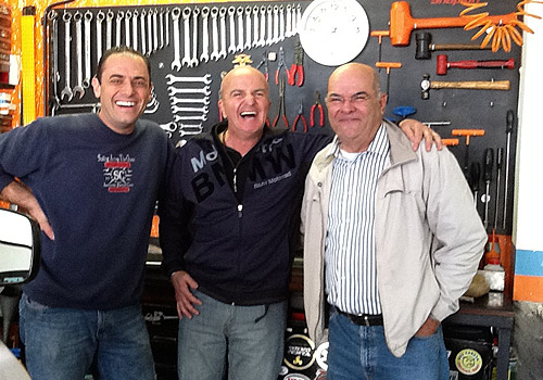 Amigos na oficina, da esquerda para a direita: Guilherme, Clement, Dimitrios, Bibo e Português